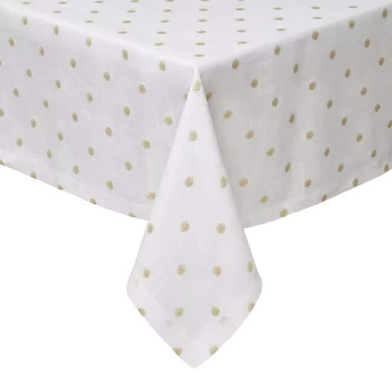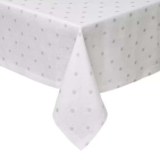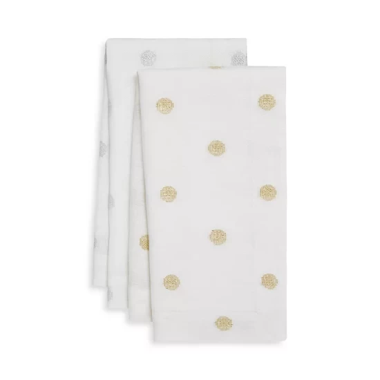 Subtle metallic dots add a festive dash to everyday dining, by Mode Living. A special coating protects the surface from spills and stains.
